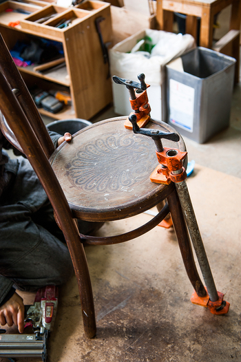 【修理実例】チェアの背面・座面張替え~モリスの生地使用