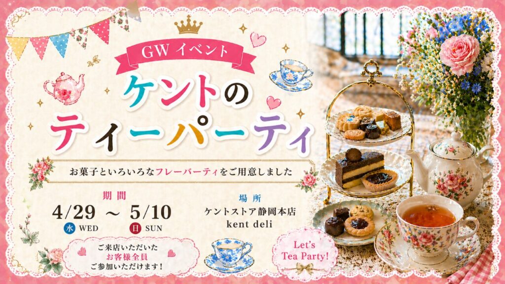 英国の豊かな日常を味わう12日間 静岡本店内のケントデリから、ゴールデンウィークを彩る特別なイベントのお知らせです。 2026年4月29日(水)から5月10日(日)までの12日間、英国のティータイムを心ゆくまで満喫できるイベント『ケントのティーパーティー』を開催いたします。 100年の時を超えて愛されてきたアンティーク家具に囲まれながら、本場イギリスの暮らしに息づく「紅茶とお菓子」のひとときを過ごしませんか? ラインナップのご紹介 今回のイベントでは、イギリスで最も親しまれているデイリーティーから、王室御用達のブランドまで、バラエティ豊かなフレーバーをご用意しました。 ☕️ 紅茶のセレクション ・Tetley(テトリー): 1837年、イギリスヨークシャーでテトリー兄弟により設立。味わいも、丸みのあるまろやかさがテトリーの魅力。ストレートでもミルクティーでも、マイルドで柔らかい味わいが楽しめます。イギリスの家庭で最も愛されているイギリス人の定番の味。 ・Taylors of Harrogate(テイラーズ): 1886年、チャールズ・テイラーによって設立。チャールズ国王御用達としても知られる。世界各地から集めた茶葉を絶妙にブレンドしヨークシャーティーに代表される香り高い至福の一杯。 🍪 紅茶のお供(英国定番スイーツ) ・ショートブレッド:スコットランド発祥で、元はパン作りで残った生地を低温のオーブンで乾燥させ、ラスクのようにしたのが発展され、イーストの代わりにバターを使うレシピになったのがショートブレッドとされています。たっぷりと芳醇なバターの風味が特徴のビスケット。 ・Cadbury社(キャドバリー):1824年創業のイギリスを代表するチョコレートメーカー。ミルクチョコレートが有名で濃厚なチョコレートの味わいが特徴。 ・ミルクビスケット:ミルクたっぷりのビスケットは、濃い目のイングリッシュブレックファーストティー(ブラックティー)との相性が抜群です。 ・マーマレード:英国人も大好きなマーマレード。イギリスで流行ったのはくまのパディントンがマーマレードの瓶をトランクに忍ばせて、パディントン駅にたどり着いたからという由縁もあります。クラッカーと一緒にお召し上がりいただくと紅茶のお供になります。 イベント開催概要 開催期間 2026年4月29日(水)〜 5月10日(日) 開催時間 9:00 〜 16:30 会場 ケントストア静岡本店 1F「ケントデリ」 参加費 無料(ご来店いただいた方全員にご参加いただけます) 提供方法 セルフサービス形式 ⚠️ お客様へのお願い お召し上がりについて: 食品衛生上の都合により、ご提供したものはすべて店内でお召し上がりください。 お持ち帰りはご遠慮いただいております。 内容について: 掲載画像のお菓子はイメージです。あらかじめご了承ください。 最後に アンティーク家具の温もりに包まれて楽しむ紅茶は、日常を忘れさせてくれる贅沢な味わいです。 ゴールデンウィークのお出かけの合間に、ぜひお気軽にお立ち寄りください。スタッフ一同、皆様の笑顔にお会いできるのを楽しみにお待ちしております! 📱 最新情報は公式LINEでも配信中! 次回のティーセミナー開催情報や、新しく入荷したイギリスのアンティーク家具、そして増尾氏が手掛ける新作紅茶の入荷など、ケントの最新ニュースは公式LINEでもいち早くお届けしています。 「セミナーの予約を逃したくない!」「新作の香りを試してみたい」という方は、ぜひこの機会にお友達追加をしてみてくださいね。 皆様とLINEを通じても繋がれることを、スタッフ一同楽しみにしております。☕✨ PCの方:スマホでスキャン LINE 友だち追加はこちら スマホの方:上記をタップ Contact Us 商品やイベントに関するお問い合わせはこちらまで 静岡本店 054-204-7003 東京目黒店 03-6420-0548 (スマートフォンの方は電話番号をタップして発信できます)